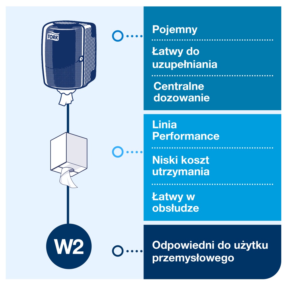 Tork dozownik Maxi do ręczników centralnie dozowanych z linii Performance zapewnia wydajność i pozwala szybko pobrać papier jedną ręką. Tork Performance to nowa generacja dozowników do profesjonalnych zastosowań w zakresie wycierania. Właściwe połączenie dozownika i czyściwa zwiększa produktywność i redukuje ogólny koszt użytkowania.