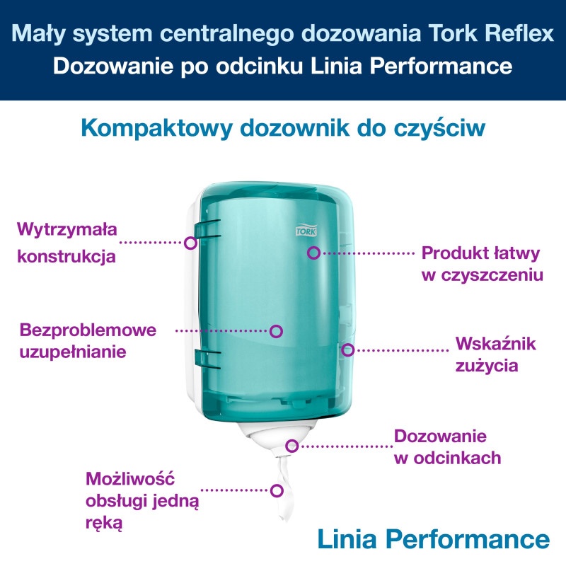Tork Reflex™ - Dozownik do ręczników w małej roli centralnego dozowania, M3 - Turkusowy