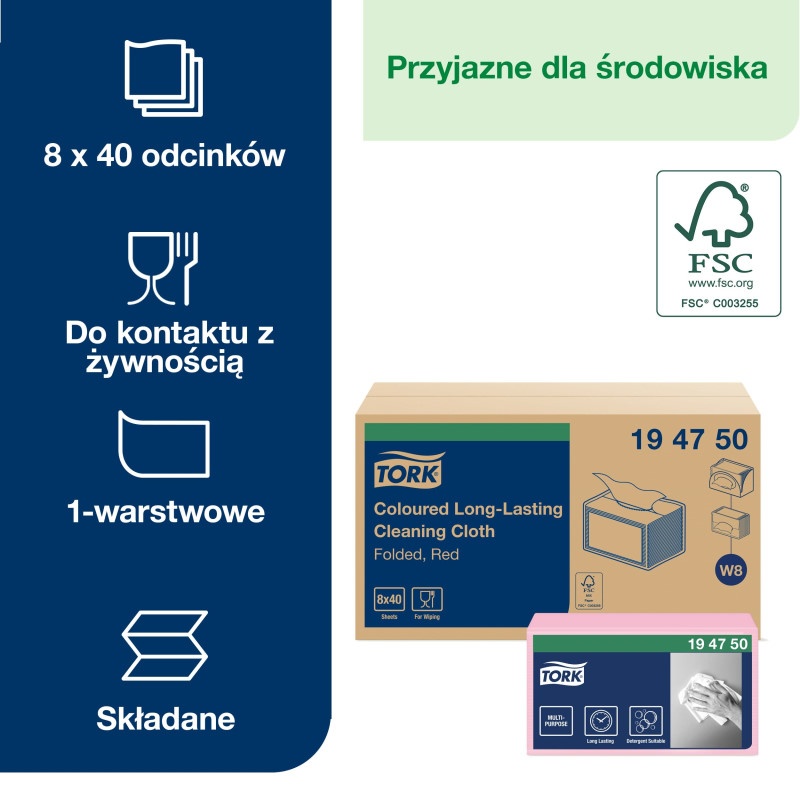 Czyściwo może być efektywnie wykorzystywane jedynie w połączeniu z dozownikami marki Tork w systemie W8.