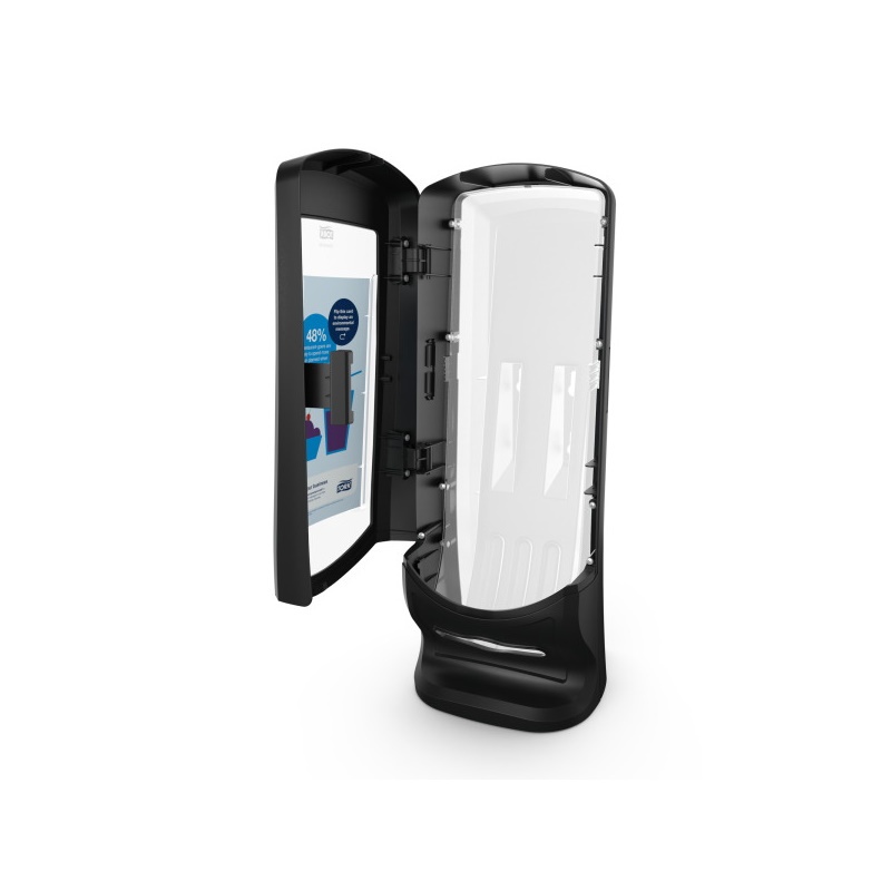 Dozownik wyposażony został w praktyczny system pojedynczego dozowania serwetek, gwarantujący nie tylko o wiele mniejsze zużycie wkładów, ale przede wszystkim wyznaczający wysoki standard higieny, umożliwiając Twoim gościom używanie serwetek, których nikt przed nimi nie dotykał. Dodatkowo, obudowa dozownika wyposażona została w nowoczesny panel reklamowy AD-A-Glance®, umożliwiający umieszczenie dowolnie spersonalizowanej reklamy, która przykuje uwagę każdego gościa Twojego lokalu.