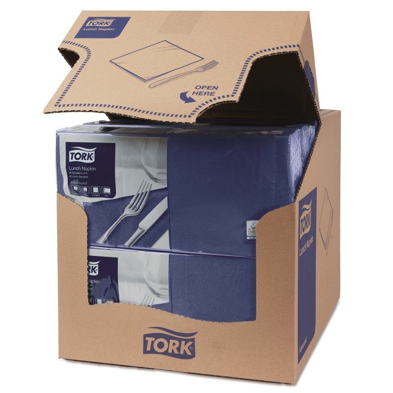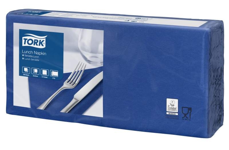 Serwetki lunchowe w ciemnoniebieskim kolorze idealne do wszelkiego rodzaju posiłków. Zaserwuj swoim gościom wygodę i estetykę jedzenia w swoim lokalu! Serwetki posiadają certyfikat Ecolabel, co świadczy o ekologicznym podejściu ich producenta - marki Tork. Serwetki subtelnie podkreślą wystrój sali jadalnej i pozytywnie wpłyną na odczucia Twoich Klientów. Przekonaj się o wysokiej jakości serwetek marki Tork. Zobacz także inne kolory i wzory
